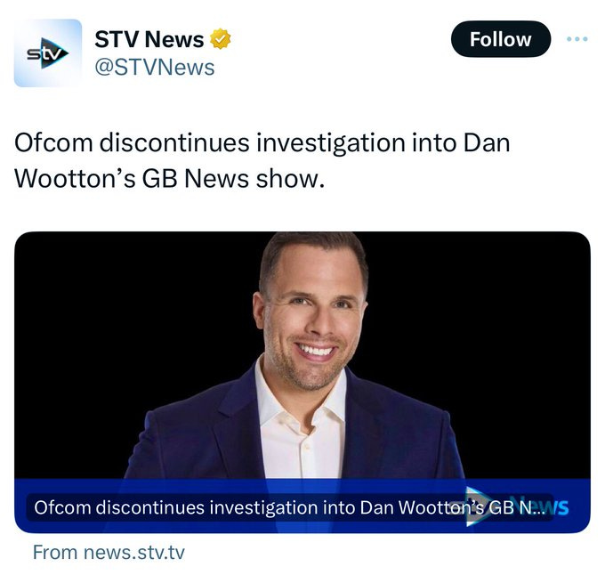 The whole saga that led to Laurence Fox, myself and Dan Wootton being sacked from GB News has finally come to an end. Ofcom, the arms-length state censorship quango has discontinued its investigation into Dan’s former show on GB News: Dan Wootton Tonight, which the three of us appeared on before being removed from the channel.